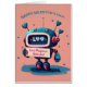Niedlich Happy Valentine's Day Card mit einem blauen, rosa Roboter mit blauen Herzen mit einem Schild mit dem Text "Liebe Programm aktiviert". Originelles Design von Inge Lewis und AI. Diese herzliche und lustige Karte wird sicherlich jedem Lächeln bringen. Weitere passende Produkte finden Sie im ingeinc.com Shop / Boutique.