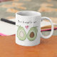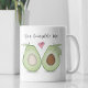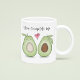 Dieses Design zeigt zwei niedliche Avocados und einen fröhlichen Valentinerspass, mit einem modernen whimsical Spaß Cartoon, einem valentinischen Teegetränk, für Ehemann Ehefrau Ehepaar Jubiläum, minimalistisch minimalistisch, vom Ehemann Ehefrau Comic schmeichelhaft, ein Sie vervollständigen mich Zitat Sprichwort, lustigen Mug Cup niedlich Trinkbehälter, ein Avocado Fruchtsafkost Comic-Grafik, Valentine für sie