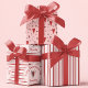 Happy Valentines Day Rosa und Rote Streifen & Herz Geschenkpapier Set