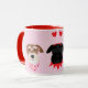Niedliche Abbildung von drei Schnauzer-Hunden, die zum Valentinstag verkleidet sind. Ideal für Hundefreunde.