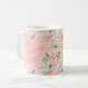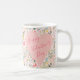 Cute wildflowers floral pink pattern with a big heart Happy Valentine's Day mug with a trendy coral script for mom, grandma, teacher, children, a romantic girlfriend, or wife.