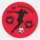 Ein reichhaltiger, samtig roter Hintergrund mit der Silhouette eines Fußballspielers. Die Nachricht oben lautet "Happy Valentines Day". Der Text kann angepasst werden. Diese Aufkleber stimmen mit der "Happy Valentines Day Soccer Kinder Card" für Kinder ab. Es kann auf dem Umschlag oder als Siegel für Geschenktaschen verwendet werden.