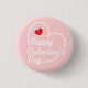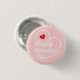 Dieses lustige Valentinstag Pinback-Knopfdesign mit weißem Skripttext von Happy Valentine's Day dekoriert mit einem herzförmigen Swash. Rosa Hintergrundfarbe ist optional und kann in jede Farbe geändert werden.