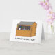 Ein Cartoon, der in seinem Schuppen mit den Worten "Tag des glücklichen Vaters" stehend ist, die unter dem Bild geschrieben sind. Das Bild ist ein Set auf weißem Hintergrund.