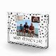 Glücklicher Vater Tag Schwarz-weißes Muster 3 Foto Block. Schwarz-Weiß-Quadrat-Muster. Fügen Sie Ihre Fotos und Namen hinzu.