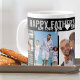 Personalisierte Vatertag-Foto-Tasse mit übergroßen Schlagzeilen-Typografie und Pinselskript. Die Fotovorlage ist für Sie Set, um 5 Ihrer Lieblings-Fotos hinzuzufügen. Der Wortlaut lautet derzeit "Tag des glücklichen Vaters 20##" und "Wir Liebe Sie in einem von Ihnen selbst", die alle nach Ihren Wünschen angepasst werden können. Moderne monochrome Farbpalette aus schwarz-grau und weiß (auch editierbar!).