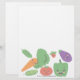 Mit einem Vektor gezeichnet fröhliches Gemüse, einschließlich einer Karotte, Erbsen, Rettich, Pfeffer, Auberginen, Tomaten.