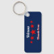 Schlüsselanhänger, enthält Wörter über Veteranen," Veteranen danken Ihnen" mit blauem Hintergrund und roten Sternen zwischen den Worten, Geeignet, um Veteranen Tag zu feiern.