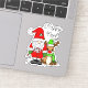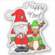 Niedliche Weihnachtsgnom und Rentier Cartoon handgezeichnete Feiertagsaufkleber.