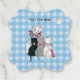 Dieses Set der Gunst-Tags für jeden Anlass sind hellblau und weiß kariert mit einer glücklichen weißen Mutterkatze, die mit ihren drei Kätzchen sitzt, die schwarz, weiß und grau alle rosa Bänder tragen. Passen Sie Ihren Text für Ihren Anlass mit der Vorlage auf der Vorder- und Rückseite an.