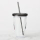 Dieser Acryl-Drink-Kater mit Stroh und Deckel hat eine fröhliche, weiße Mutterkatze, die mit ihren drei niedlichen Kätzchen sitzt, die alle rosa Bögen um ihren Hals tragen und schwarz, weiß und grau sind.