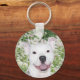 Weißer Pitbull-Terrier mit einem großen fröhlichen Lächeln auf dem Gesicht und Wildblumen im Hintergrund Hundeliebhaber Schlüsselkette