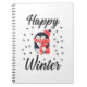 Niedliche Pinguin-Illustration, Schneeflocken und Text: Happy winter.
