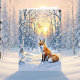 Happy Winter Solstice. A pretty winter scene with a fox sitting in the snow watching the sun go down on Winter Solstice.