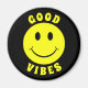 Happy Yellow Face Good Vibes Black Magnet