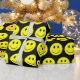 Niedliche gelbe Happy Gesichte. Umgeben Sie sich mit einem aufregenden fröhlichen Design, das Freude, Positivität, Glück, Freude, Güte, mit diesen lächelnden Gesichtern fördert. Ein freundliches, einladendes Grafikdesign in hellgelb, schwarz und weiß.