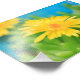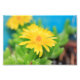 Ein Foto einer fröhlich gelben sukkulenten Blume vor türkisblauem Hintergrund.