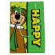 Mit diesem fröhlichen Yogi Bären-Design verteilen Sie Positivität! Mit seinem klassischen Grinsen, seinem grünen Hut und seiner Krawatte und dem fetten Wort "GLÜCKLICH" vereint dieses lebendige Kunstwerk den spielerischen Charme des Lieblingsbären des Jellystone Parks. Das auffallende Grün- und Gelbtönsystem, kombiniert mit einem Retro-Animationsstil, macht dieses Design perfekt für nostalgische Cartoon und lustige Charaktere. Bringen Sie mit dieser fröhlichen und energischen Illustration das ansteckende Glück des Yogi Bären zu Ihren Lieblingsprodukten!