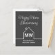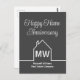 Diese dunkelgraue Happy Zuhause Jubiläumspostkarte ist einfach und subtil mit Ihrem Monogramm und dem richtigen Anwesen Firmennamen in Weiß. Es ist mit einer schicken, minimalistisch-weißen Kontur eines Hauses ausgestattet. Moderne Postkarten für Immobilien-Marketing, um sich an die Kunden der Vergangenheit zu wenden.