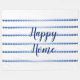 Blanket mit blauen Streifen und Happy Zuhause Text in weißem Hintergrund. Passen Sie den Text an.