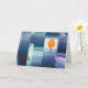 Ein Baum mit orangefarbenen Herbstfarben, umgeben von verschiedenen blauen und lila Rechtecken. Abstrakte Wasserfarbe und Bleistiftmalerei auf Papier von Paul Klee.