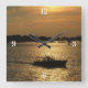 Harbour Boat Scene Spate Abend Sun Behind Clouds Quadratische Wanduhr