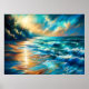 Hard Pastel Zeichnend Wellen an einem Strand Poster
