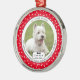 Lieblings-Hobbyhund-Foto-Ornament mit einem rot-weißen Knochen- und Pfotenmuster mit einem Hundeknochenelement, das mit dem Namen und dem Datum Ihrer Haustiere personalisiert ist. Fügen Sie einfach Ihr Haustier Foto und Namen und Sie sind alle Set zu gehen. Besuchen Sie unseren Shop, um unsere große Auswahl an Weihnachtshundschmuck-Foto-Ornamenten zu sehen.