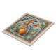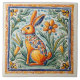 sommerliche sizilianische Keramik Kachel, italienisches handgemaltes Muster, mediterranes Hasen portugiesisch, blauen orangefarbene Hasen,botanische Sommerlandschaft,kühne Blume blumenreiche Blume,authentisches klassisches Gemälde,Vintag antikes rustikales Land,volkskünstliches spanisch talavera,cremegelbes Tier