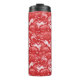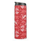 Flasche mit Wollmalerei in Rottönen, niedliche weiße Hasen springen auf Schneefeld. Needle and wet felting, digitale Manipulationen, 2020 © Clipso-Callipso / Julia Khoroshikh www.juliakhoroshikh.art.art #winterholidays #whiterabbits #holidaygifts #coffeemug #coffeetime #giftideas #flask #Trinkbehälter