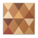 Keramik-Fliesen in einem modernen Harlequin-Muster aus gestapelten Dreiecken, die Diamantformen formen - weiche Erdtöne aus beige, creme, braun und braun auf einem hellen Terrakotta/Rost Hintergrund