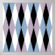 Ein inspiriertes Design aus der Mitte des Jahrhunderts mit einem harlequin-Diamantenmuster in blau, staubig lila, schwarz und weiß.