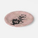 Rosa Harlequin-Rautenmuster-Hintergrund mit schwarzer Harfe und Vogelüberlagerung in der Silhouette