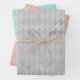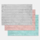 Geschenkpackung mit grunge bedrücktem Harlequin Muster in drei verschiedenen Farbvarianten.
