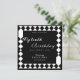 Eine moderne, einzigartige Erwachsenenüberraschung Geburtstagseinladung mit einem auffallenden, schwarz-weißen Harlequin-Muster. Für jeden Geburtstag individuell einstellbar