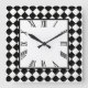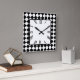 10.75" x 10.75" Acrylwanduhr mit Schwarz-Weiß-Raute, ein beliebtes Design im 80er. Leicht lesbare römische numerische Uhr auf weiß mit einem schwarzen Rand. Sehen Sie sich die gesamte Tubular 80er Clock Kollektion im DÉCOR an| Kontrollabschnitt.