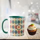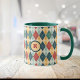 Harlequin Retro Red Gold Green Raute Initial Tasse