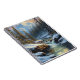 Inmitten einer Winterlandschaft durchquert ein stürmischer Strom einen schneebedeckten Wald. Am Horizont stehen majestätische, gefrorene Berge, deren Gipfel von Schnee geküsst werden. Eine ruhige Szene, in der das Lied des Bachs und die wilde Koalition der Natur ein Portrait von ruhiger Schönheit malen.