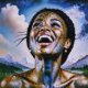 "Harmony in Gold und Himmel". Dieses Bild verbindet eine moderne Afro-Muse mit sternigen, goldenen Elementen, die das Gleichgewicht menschlicher Kraft und universelle Harmonie feiern. Metallische Akzente und kosmische Verbindungen machen dies zu einem visuell atemberaubenden Stück, um Positivität und ein Gefühl des Unendlichen inspirieren.