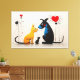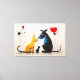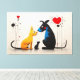 Eine skurrile Mischung aus Hunde und Felsen, inspiriert von Joan Miró, wo Hund und Katze einen zarten Blick haben, der Harmonie in lebhaften Farben schafft. Die spielerische Komposition erfasst das Wesen der Freundschaft und lädt die Zuschauer ein, die fröhliche Verbindung zwischen diesen beiden wunderbaren Kreaturen in einer surrealen und farbenfrohen Welt zu erkunden.