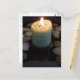 Lit "Harmonie" Kerze reflektiert in einem friedlichen Pool.