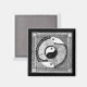 Ein Yin Yang zeichnend mit symbolischer Symbolik. Wenn Sie sich dieses Design genau ansehen, werden Sie Schildkröten wie ein Wesen bemerken, das für Himmel und Erde steht. In der Muschel der Schildkröten sind Spiralen, die das Leben gemein. Das Yin Yang ist Set auf einem quadratischen Hintergrund aus geflochtenem Stroh, das für Harmonie steht. Die Außenkanten des Strohplatzes zu kreisen, ist ein feather aussehender Rahmen, der die himmlische Weisheit symbolisiert. Für mich stellt dieser Stift und die Tinte zeichnend eine delikate Vermischung von Symbolen dar, die eine harmonische Balance schaffen.