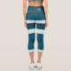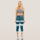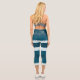 Three-color design with harmonious stripes. Horizontal lines in three colors for your sporty Capri leggings. Add your name on the high waist athleisure. This variant is the sea blue scheme in Prussian blue, midnight green and azureish White.