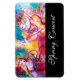 Farbenfrohe, künstlerisch-skurrile, abstrakte figurative zeitgenössische Aquarellmalerei mit drei Spielerfiguren, blumengeschmückten Wirbel, Rose, Blume, vergoldeten Glitzern, Silberfolie in lebhaften Gelb-, Rot-, Blau-, Rosa Fuchsienfarben .