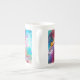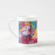 Farbenfrohe, künstlerisch-skurrile, abstrakte figurative zeitgenössische Aquarellmalerei mit drei Spielerfiguren, blumengeschmückten Wirbel, Rose, Blume, vergoldeten Glitzern, Silberfolie in lebhaften Gelb-, Rot-, Blau-, Rosa Fuchsienfarben .