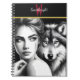 Ein faszinierendes Schwarz-Weiß-Bild, das eine Frau in tiefer Verbindung mit einem majestätischen Wolf darstellt und eine Verbindung zwischen zwei mächtigen Wesen zeigt.