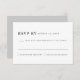 Diese Hochzeitskarte bietet eine grau-weiße Farbpaarung mit modernem minimalistischem Design. Bearbeiten Sie alle Texte für Ihre Veranstaltung. Diese Antwortkarte eignet sich perfekt für Ihre moderne minimalistische Dusche, Verlobung Dinner, Ruhestand Party oder andere besondere Anlässe.