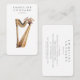A detailed and elegant illustration of a harp with floral elements delicately placed on the instrument, creating a harmonious and artistic feel. For a musician and teacher. There is sample text on the back of your business card to customize for your services offered. If not needed you may simply delete it. Customize for performer only, or performer and teacher.
