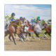 Fantastische bunt Pferderennen Foto von Parx Racing und Casino am Pennsylvania Derby Day. Unter einem schönen blauen Himmel jubeln diese Fahrer ihre Pferde zu Beginn des Rennens um Platz. Die Roan-Weiß gründlich "Harpoon"hat die frühe Führung mit Jockey "Frankie Pennington"Eine große Gruppe von Racehorse sind fest gebrannt, wie sie verlass der Startgate in der Tribüne.