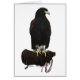 Kühne Grafik eines erwachsenen Harris Hawk auf einem Falkenhandschuh.